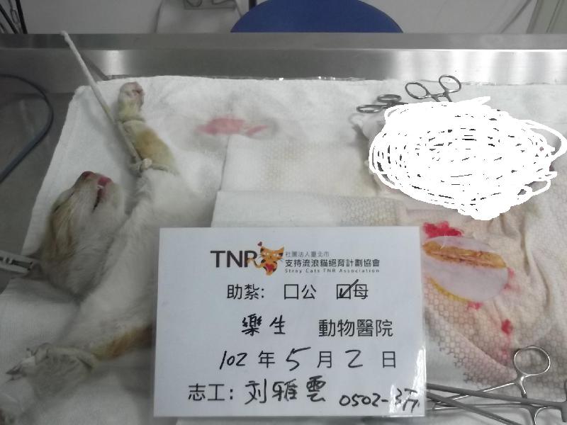 結紮醫院: 樂生動物醫院 結紮費用: 1200