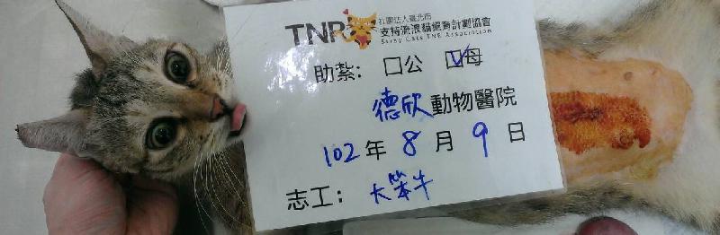 花色: 虎斑母貓 誘捕地點: 三重龍門路仁愛街