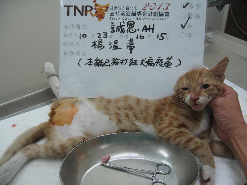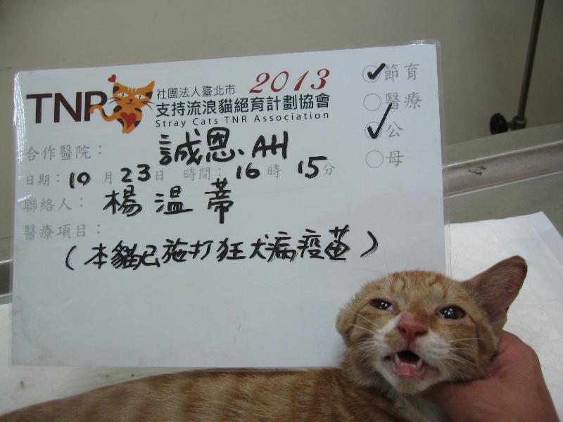 花色: 橘白 誘捕地點: 公館