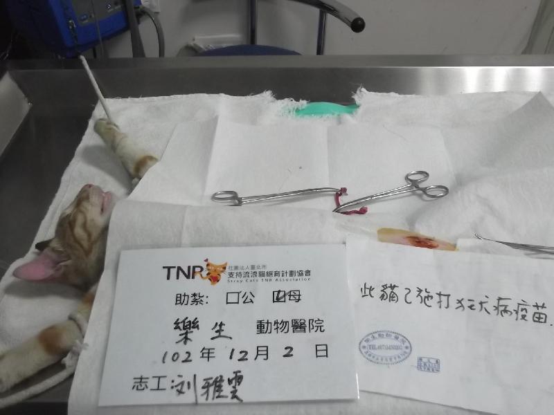 結紮醫院: 樂生動物醫院 結紮費用: 1200