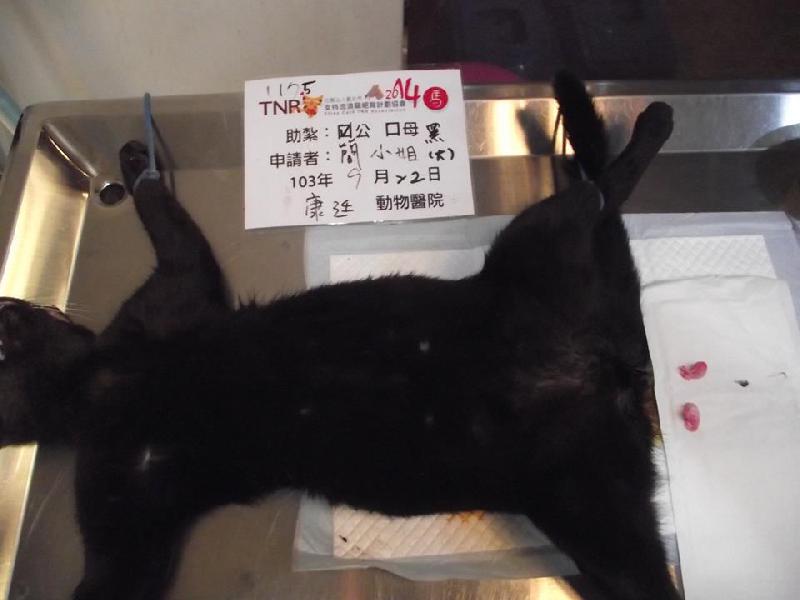 這個點共抓了兩隻黑貓..這隻是體型比較大隻..研判應該是上上一胎已經結紮放回去的黑母貓所生下的..如今小孩也都已經長很大了..可紮也就抓了..