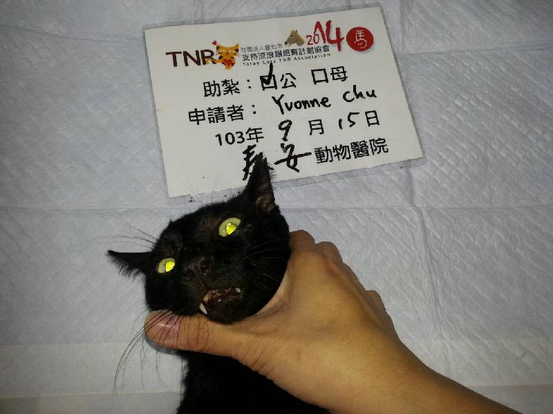 這隻大黑貓是我去朋友家時,在她家樓下附近巷子裡發現的。牠很大隻,力氣也很大,抓到後在提籠裡大亂快把提籠給拆了....我知道牠是因為害怕,心裡替牠難過但又不得不這麼做!朋友說她們那裡簡直是貓社區,因為巷弄挾小好藏身,繁殖很快!只好再找時間再去抓看看了!感謝協會協助及捐款者您的善款幫助TNR。