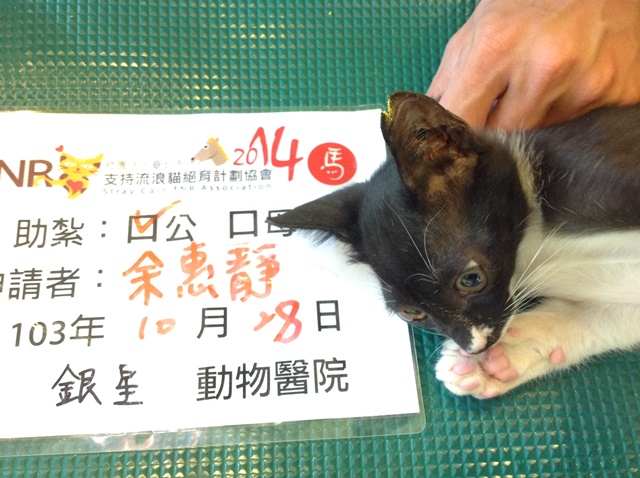 花色: 黑白貓 誘捕地點: 建國一路國道旁