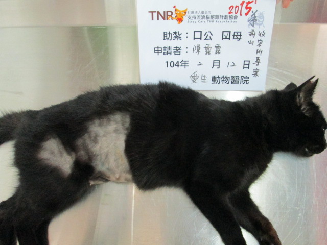 誘捕者暱稱: 陳露露 性別: 母 花色: 黑貓 誘捕地點: 壽山收容所 結紮醫院: 愛生動物醫院 結紮費用: 0 助紮者: 已付款:林小儀x3 額外醫療費用申請: 特別說明與誘捕心情: 專案編號PRO00140