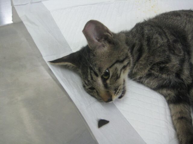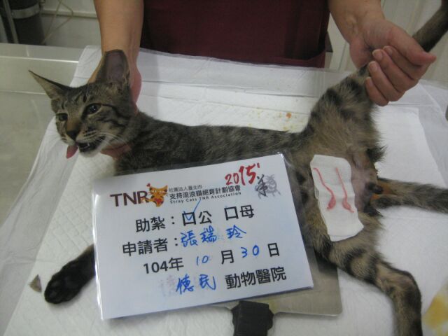 牠的媽媽已經生過好幾次了,又一直抓不到牠,四隻小貓都漸漸長大,怕繼續生生不息就動手趕快要把牠們都抓紮,牠是被我抓到的第一隻,感謝大家愛心的資助牠們的結紮費用,減少流浪貓數量