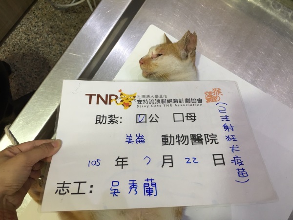花色: 橘白 誘捕地點: 花蓮市德安