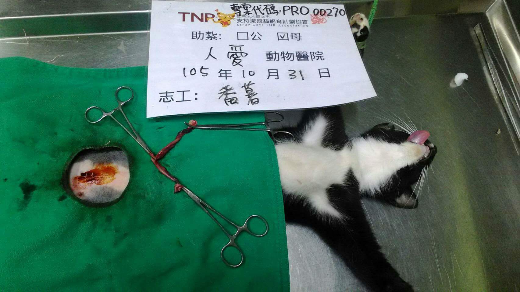 結紮醫院: 人愛動物醫院 結紮費用: 1200
