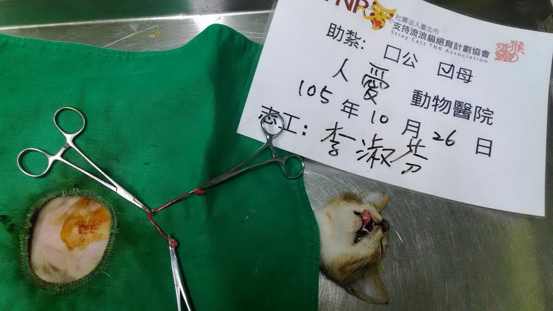 結紮醫院: 人愛動物醫院 結紮費用: 1200