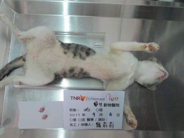 內埔村東陽街這1帶美食聚集,也聚集了很多浪浪,有些親人,在客人來來去去的桌邊等吃,因為有較熟識的店家,於是請店家同意讓我放置誘捕籠,幫助浪浪節育,也讓這邊貓貓的環境能改善,3號傍晚店家通知落網,這還是較親人可以徒手推進籠的,9月4號送至愛生醫院,3日後即可原放,謝謝醫生,謝謝協會幫助,謝謝捐贈人愛心滿滿。