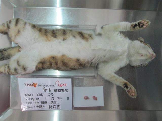 阿弟個性較兇,之前想誘捕都不成功,這次讓他足足餓3天,才成功把他騙進籠,內埔鄉展興路小路裡的貓貓有陸續增加的情況,希望在穩定天氣下,能加緊腳步完成tnr,26號早上送至愛生醫院,3天即可出院,謝謝協會幫助,更謝謝愛心捐贈人。