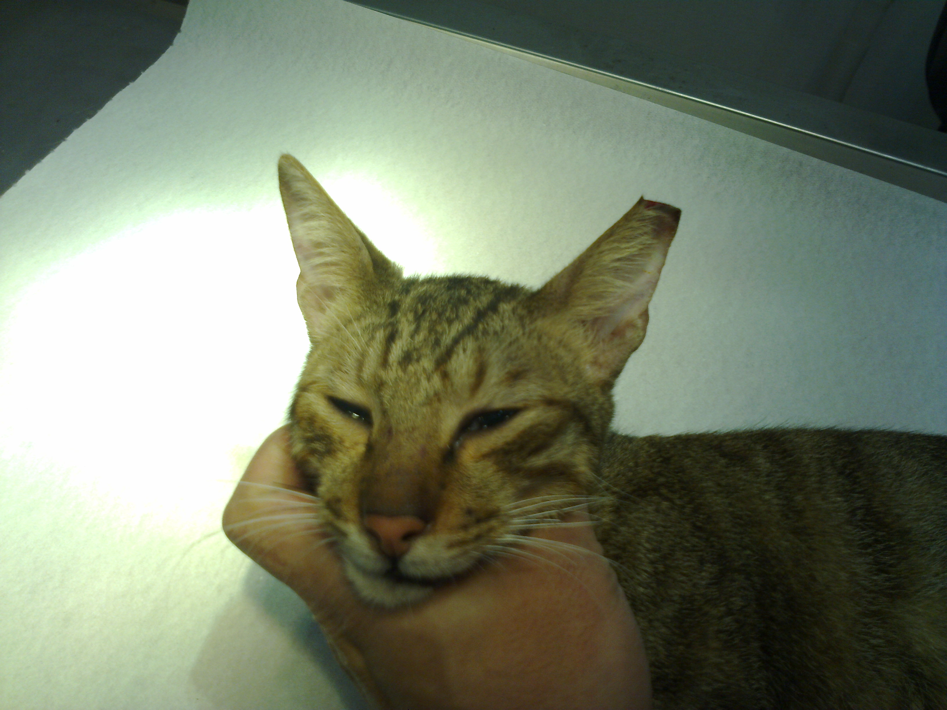 這隻貓從沒聽過他的叫聲,一直懷疑他是啞巴;最奇怪的是,我明明看他肚子大過又縮小,一直認定他是母貓,今天總算還他清白了