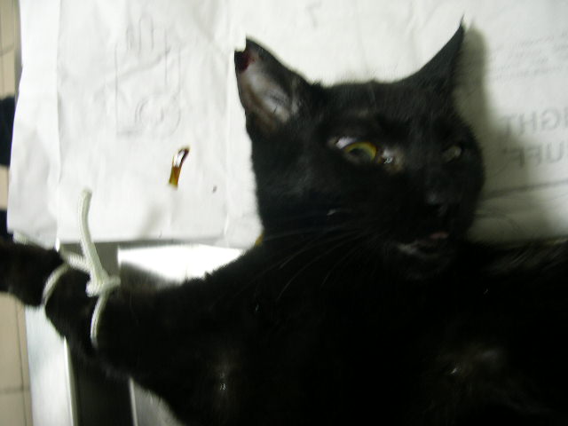 是一隻膽小但愛吃的小母貓,牠的母親是一隻玳瑁,生了二隻小黑,一公一母,剛好在同一天都一起抓到了,這幾天一定要抓到牠媽媽,不然一直生真的很可憐!