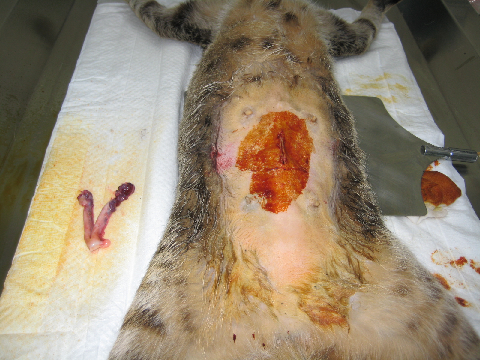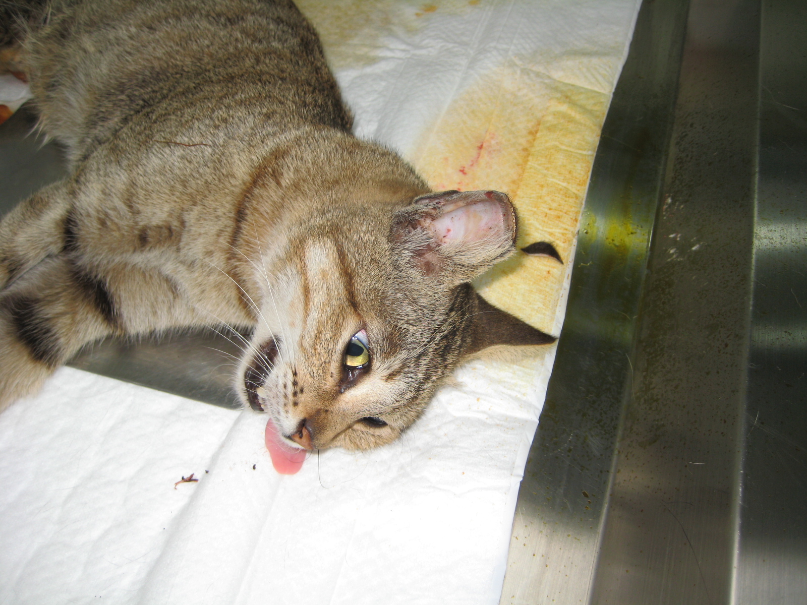 那邊的貓咪都有上呼吸道感染的問題,而且滿身的跳蚤,造成好幾隻貓有明顯的皮膚問題,其中一隻貓的嘔吐物發現,腸胃道裡有很多的蛔蟲,因此醫生為他們除蚤及做體內除蟲,希望他們放回時,是健健康康的。