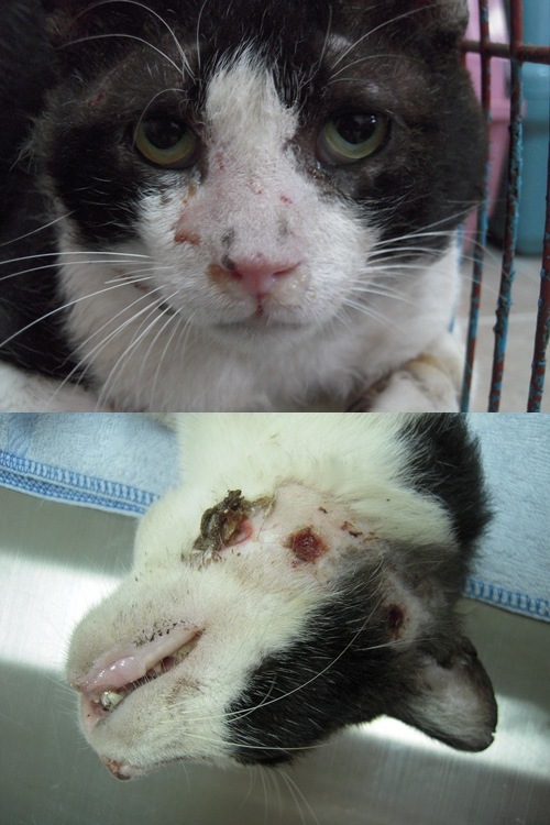 長時間的相處,讓貓咪戒心降低,愛打架所以傷痕累累..希望TNR之後,會改善這狀況