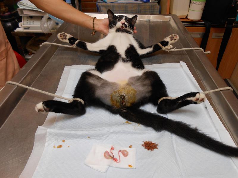 這隻小浪貓咪原本有嚴重的鼻氣管炎和皮膚病,在經過我留在家裡照顧好一陣子,已漸漸康復,但是最近卻發情了,所以先做結紮。