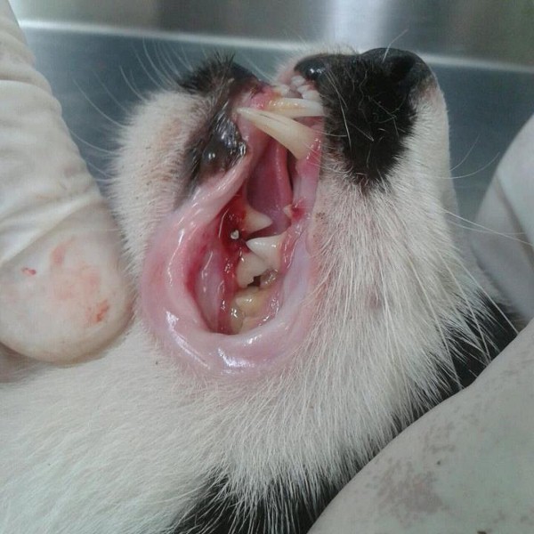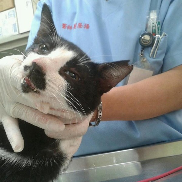 鐵路旁30年老屋旁誘捕的黑白鬍子公貓, 手術中發現牙周病已引起口腔炎, 目前治療中. <913-4M>