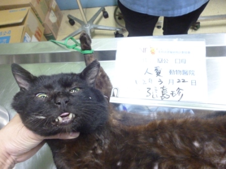 誘捕者暱稱: Sally Chang 性別: 公 花色: 黑貓 誘捕地點: 陽明國中 結紮醫院: 人愛動物醫院 結紮費用: 700 助紮者: 已付款:劉雅惠x3 額外醫療費用申請: 特別說明與誘捕心情: 這是一個國三女同學來信協會求援的case:
