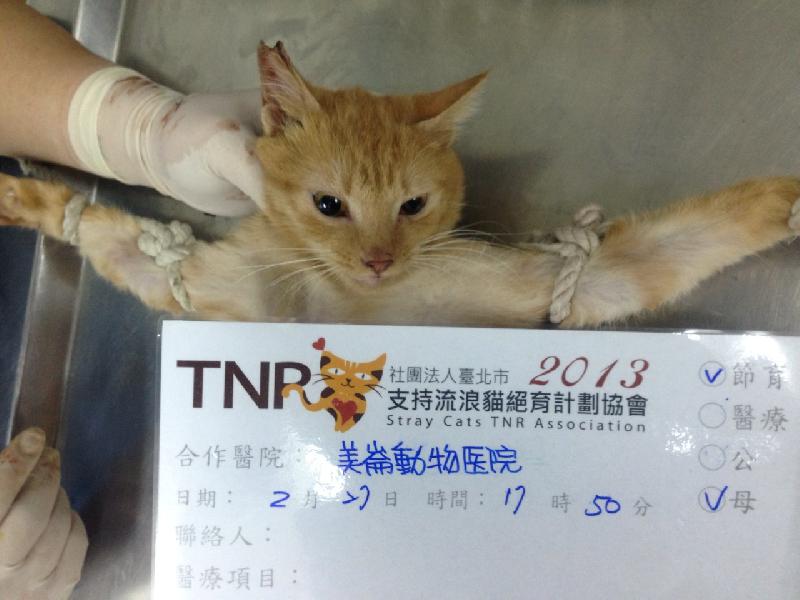由於照片漏掉了,所以現在補申請,這是隻從花蓮收容所接出來的貓咪,這一批接出來有7隻,部份結紮費用由志工分擔,貓咪都蠻親人的,應該是有飼養過被飼主遺忘的貓咪,會送養讓大貓也有一個家,目前由志工林慧玲照顧,也謝謝TNR協會的幫助,也請大家贊助結紮費用,謝謝!